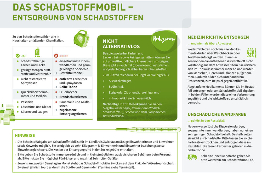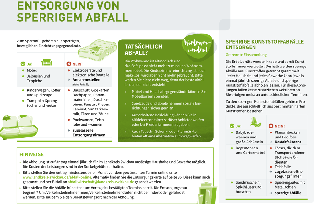 Weitere Interessante Themen findet ihr unter dem Link Abfallkalender in PDF. Unter anderem findet ihr dort auch die Termine für Schadstoffentsorgung. Ansprechpartener und Karten für die Sperrmüllabhohlung findet man dort auch.
